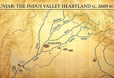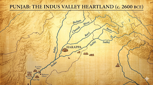 Punjab’s epic 3,000-year saga etched into the silt of its Five Rivers. From the Vedic hymns chanted along the Sapta-Sindhu to the sophisticated urbanism of Harappan citadels, the rivers have been both cradle and witness to civilization. This landscape, a strategic gateway for empires, synthesized Sufi mysticism, Sikh sovereignty, and Colonial engineering into a singular, resilient identity. Whether through the sacred geography of Guru Nanak or the hydraulic transformation of the Canal Colonies, the water’s pulse remains the region’s heartbeat. Today, Punjab’s heritage flows globally, a defiant testament to a land that turns history into a living, breathing celebration.